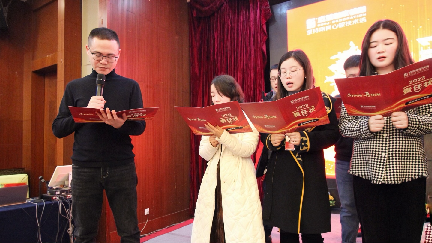 余總帶領(lǐng)各中心負(fù)責(zé)人簽訂2023年度責(zé)任狀并進(jìn)行宣讀,表示一定會帶領(lǐng)各自團(tuán)隊奮力拼搏,全面達(dá)成指標(biāo)和任務(wù),以堅定的信念迎接新一年的機(jī)遇和挑戰(zhàn)。