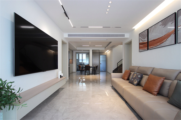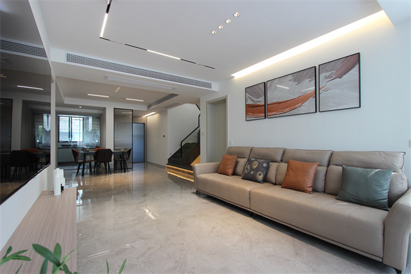 本案是一套215㎡的復(fù)式住宅,男女業(yè)主都是從事醫(yī)護(hù)行業(yè),常年待在光線明亮到有點(diǎn)刺眼的醫(yī)院環(huán)境中,希望自己的新家能“反其道而行”,暗一點(diǎn),再暗一點(diǎn)。在與設(shè)計(jì)師的溝通中,采用全屋無主燈的設(shè)計(jì)。他們喜歡簡單、有設(shè)計(jì)感的家居環(huán)境,并且對(duì)未來生活比較實(shí)用的設(shè)計(jì)。