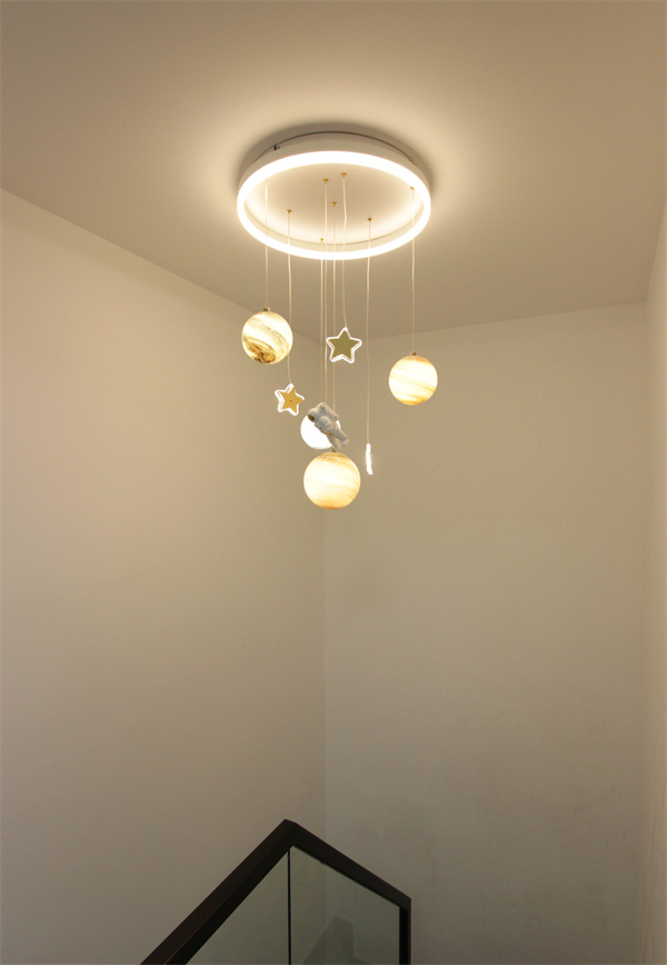 二樓上空的星空吊燈,璀璨奪目,閃閃爍爍,仿佛進入了一個童話世界。在家就能感受到漫天的星空。