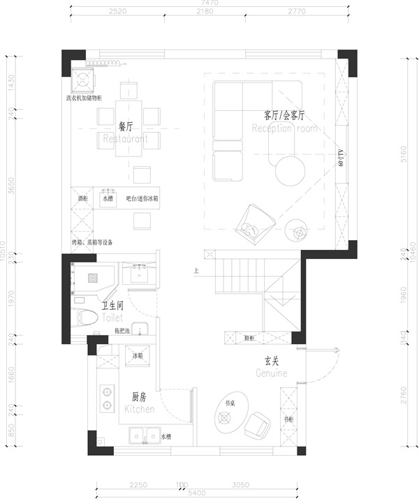 本案為復式戶型,一樓為動區,二樓為靜區,功能區域分明,簡約又得體。