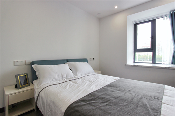 次臥以簡(jiǎn)潔樸素的白色為主,拒絕繁復(fù)的設(shè)計(jì),讓睡眠空間更加純粹。乳白色床頭柜與整體色調(diào)搭配,棕木色的木地板給室內(nèi)增添溫馨與舒適。