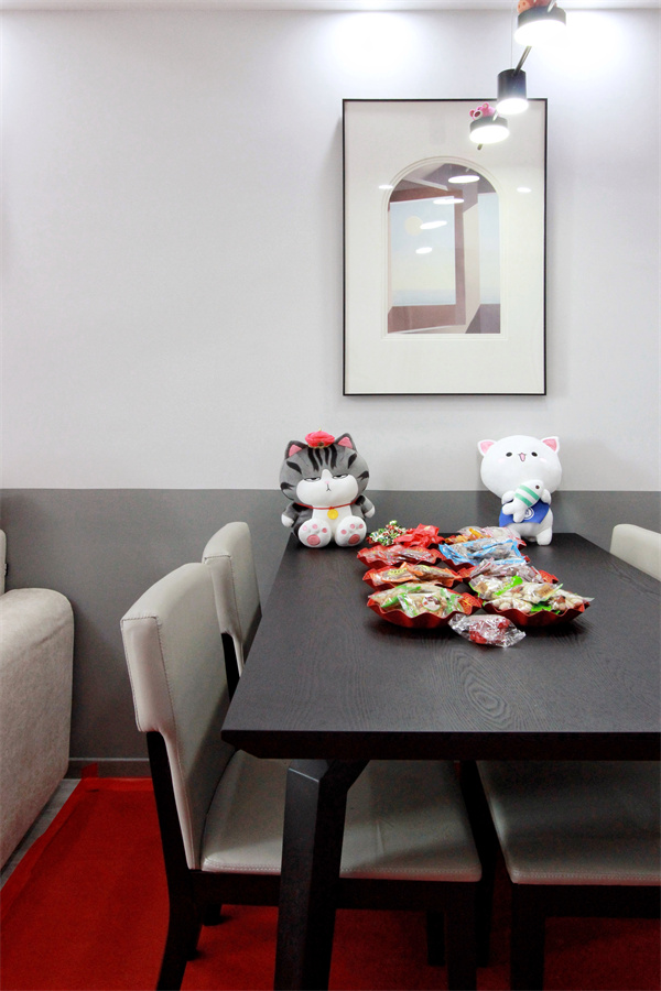 本案業(yè)主為新婚夫妻,這套房也是為了新婚而準備的,兩位業(yè)主都非常喜歡貓,家里無論是燈具還是桌面上,都有小貓玩偶的裝飾,裝點著他們的幸福。