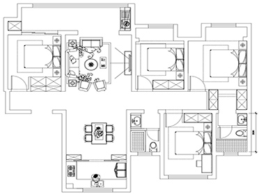 客廳在打通陽臺(tái)的設(shè)計(jì)下,陽臺(tái)做了落地窗,更好的把自然光線引進(jìn)室內(nèi),讓客廳顯得更加明亮。電視柜與茶幾顏色及樣式一致,是業(yè)主當(dāng)時(shí)在家具城一起采購的,在視覺上達(dá)成了統(tǒng)一的效果。