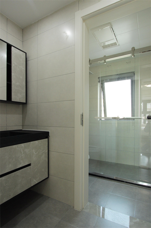 灰色調(diào)的衛(wèi)生間更具現(xiàn)代感,臺(tái)下盆設(shè)計(jì)避免雜亂,干濕分離的設(shè)計(jì)更能有效的隔絕水汽。