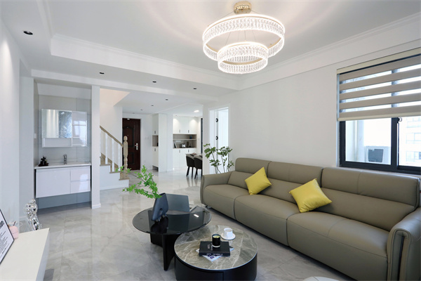 進入客廳空間,有樓梯做空間過渡的框架,形成半隔斷的視覺感受。