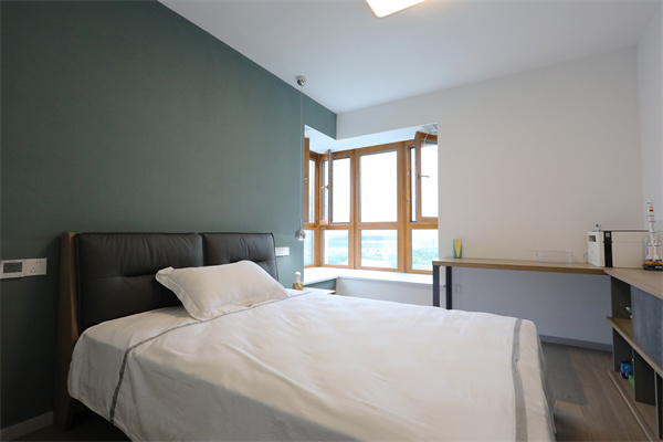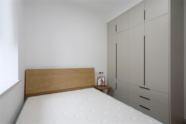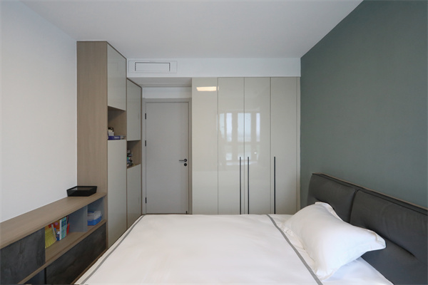 但依舊設計整面墻的收納柜,保留應有的臥室功能。