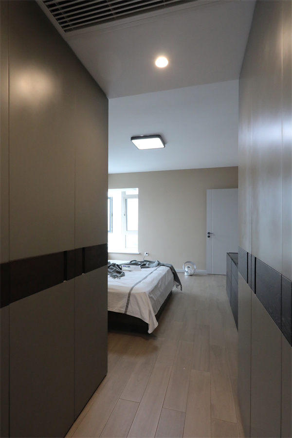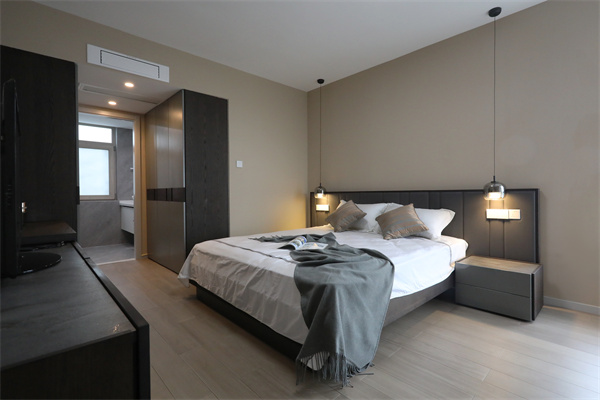 臥室按照業主喜好,以深沉的色調為主,營造一種低調的舒適感。